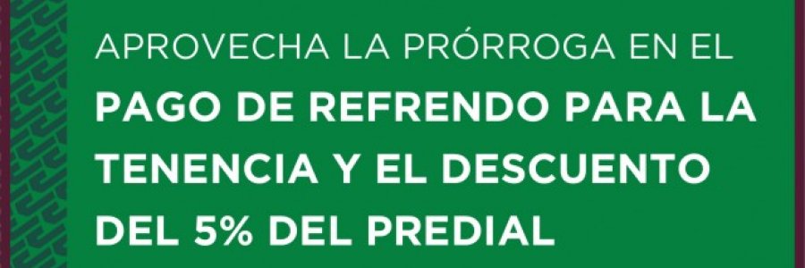 APROVECHA LA PRÓRROGA EN EL PAGO DE REFRENDO PARA LA TENENCIA Y EL DESCUENTO DEL 5% DEL PREDIAL