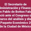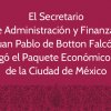 El Secretario de Administración y Finanzas, Juan Pablo de Botton Falcón, entregó al Congreso el Paquete Económico 2026 de la Ciudad de México